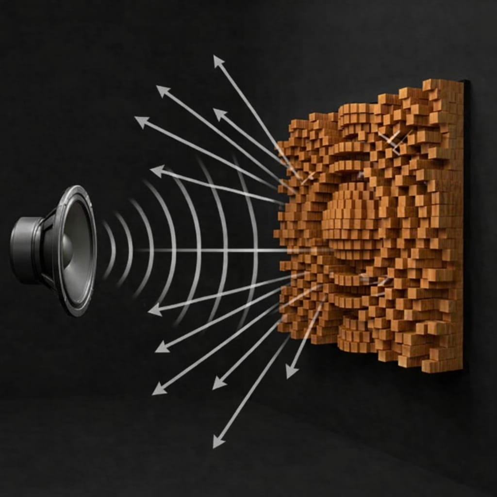 The features a mathematically optimized quadratic residue design that diffuses sound in both horizontal and vertical directions. This dual-axis diffusion ensures consistent acoustic performance across a wide frequency range. Its geometric pattern not only improves sound quality but also adds a modern architectural aesthetic to your walls, making it a perfect blend of science and style.